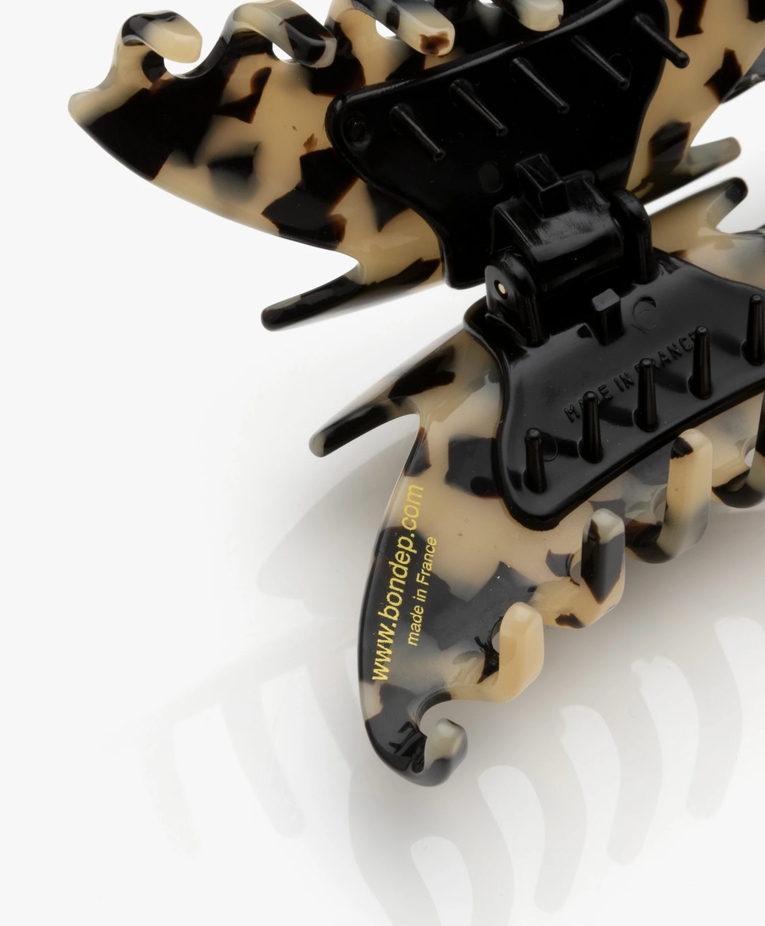 Deze handgemaakte Bon Dep haarklem komt in een tortoise ontwerp in beige en donkerbruin en geeft een klassieke touch aan iedere hairdo. Gemaakt van een stevige kwaliteit met optimale grip in het haar, zonder te beschadigen. Praktisch en stijlvol, precies zoals we van het merk gewend zijn.