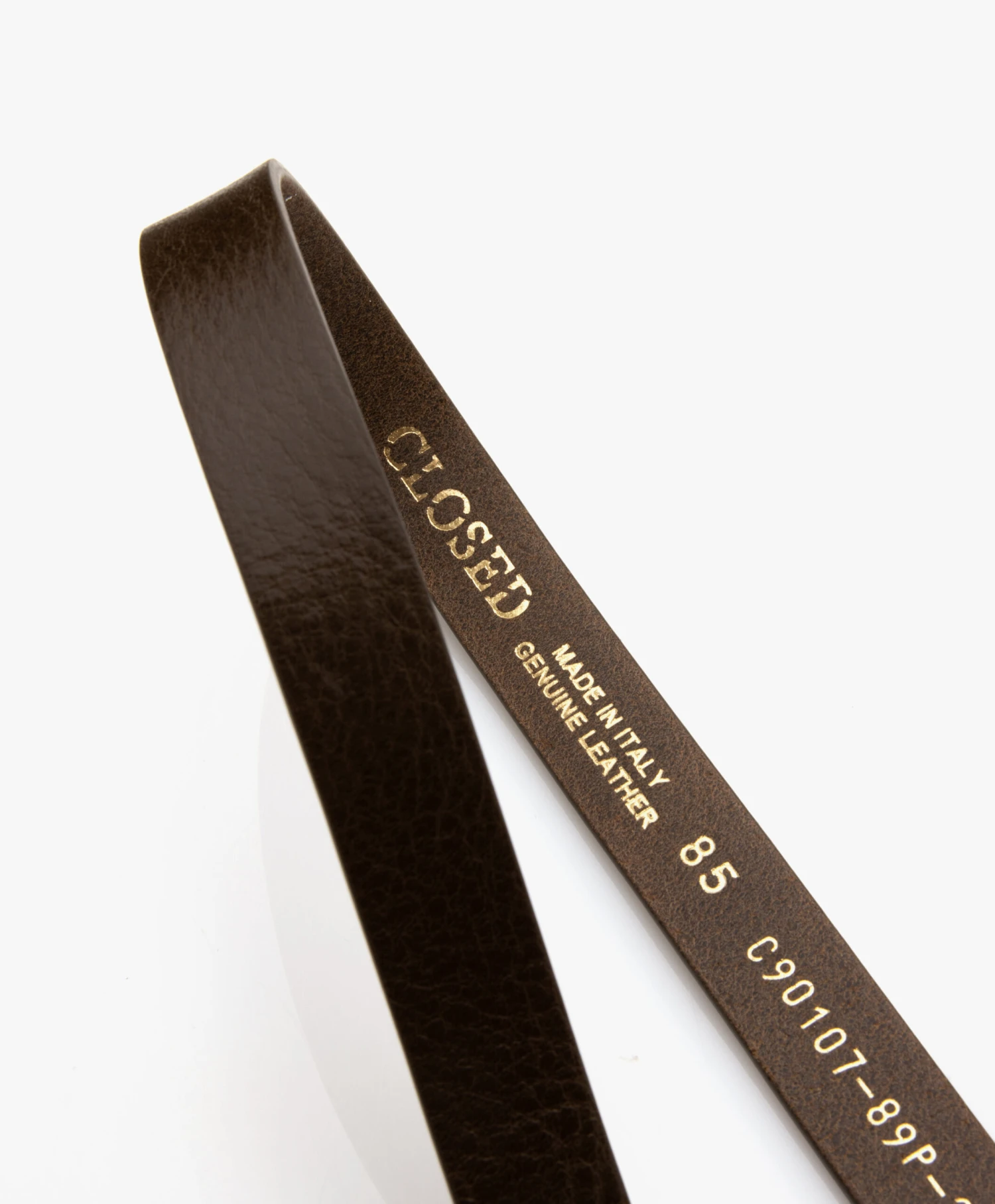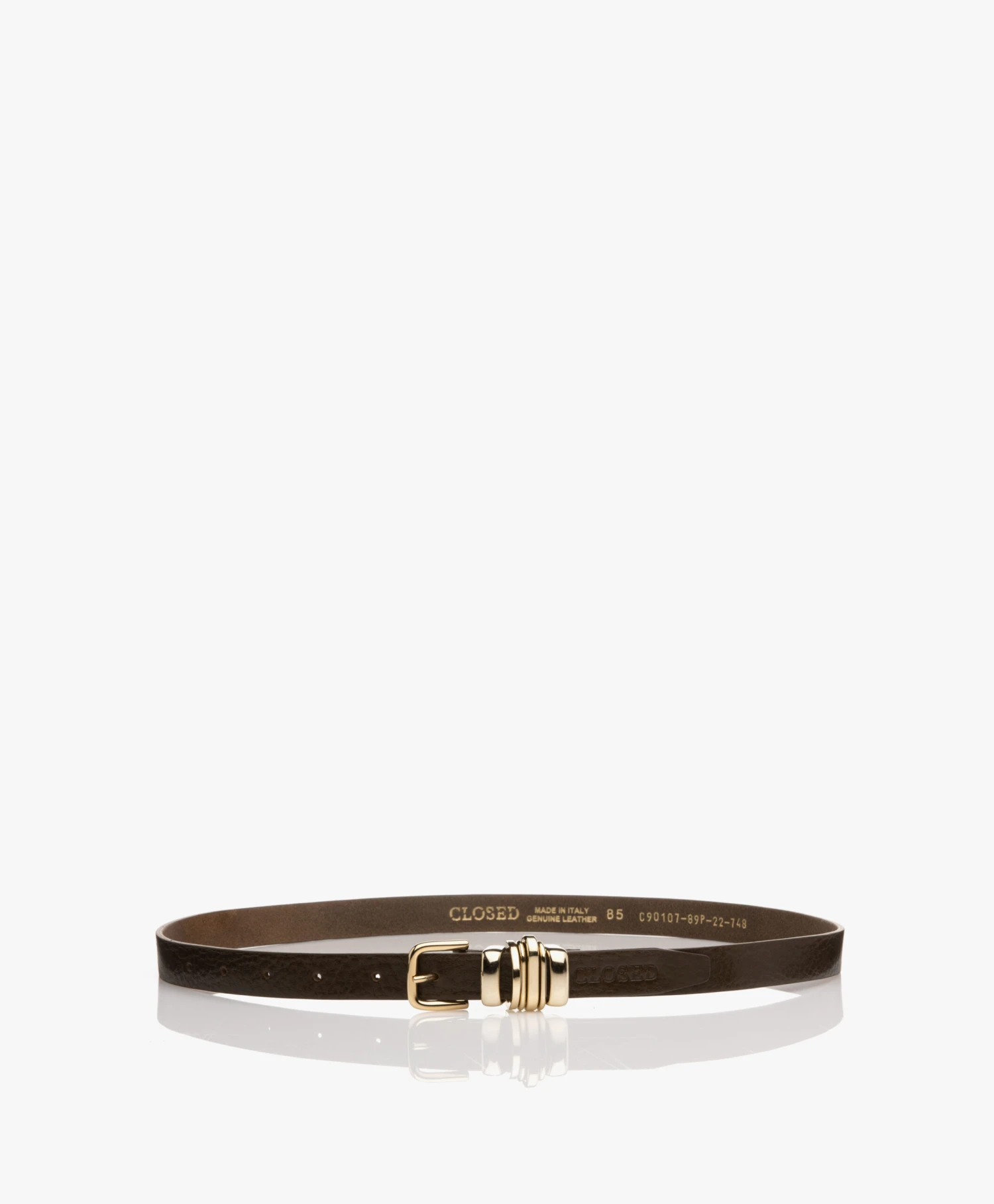 Anders dan anders, en toch veelzijdig: deze Closed riem onderscheidt zich door de goudmetalen riemlussen die allemaal net anders van vorm zijn. De donkerbruine riem is gemaakt van subtiel generfd leer en is handgeverfd – inclusief gepolijste randen – en is daarmee tot in perfectie afgewerkt. Dat kan ook niet anders, want bij Closed gaat stijlvol design altijd hand in hand met kwaliteit.