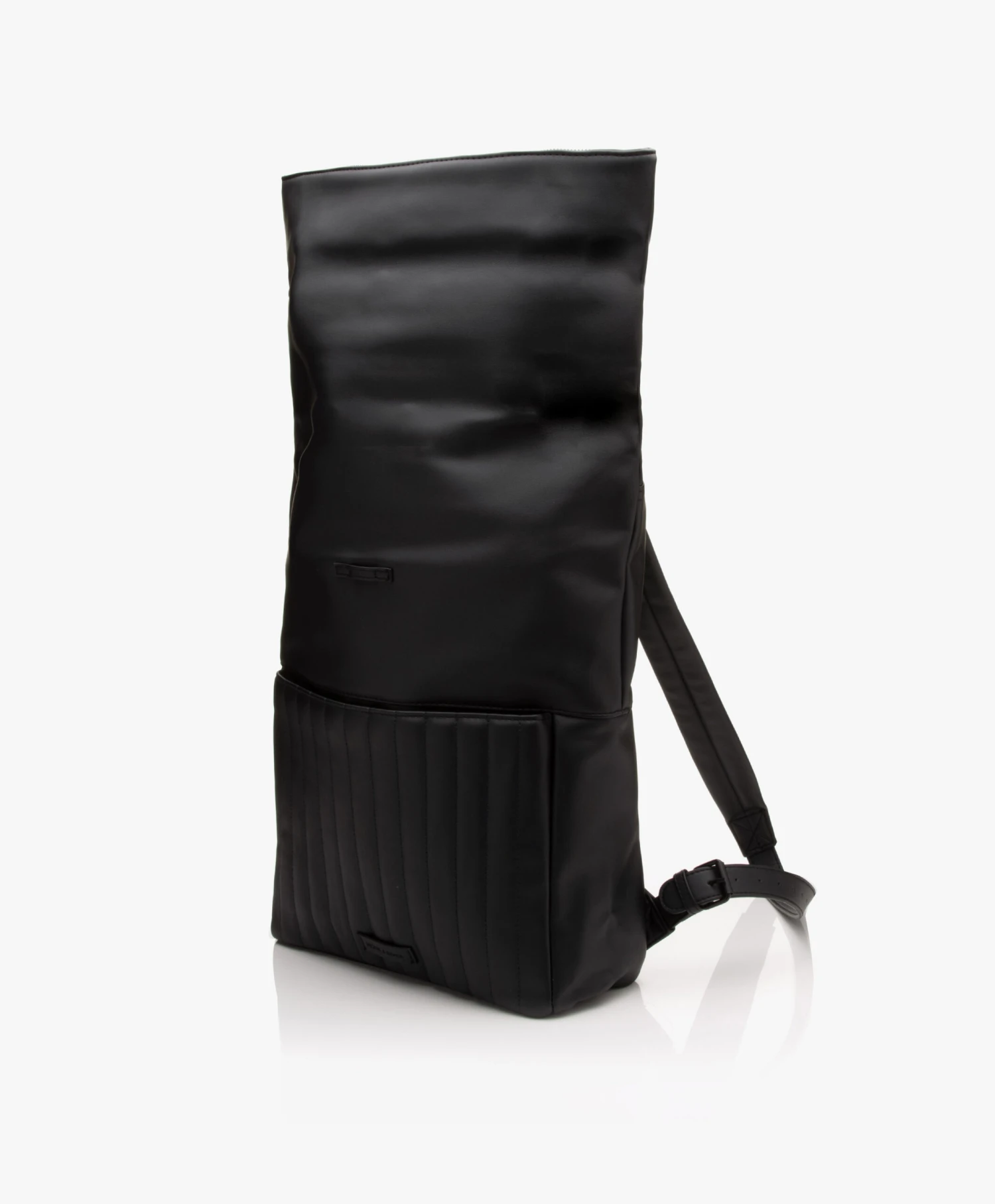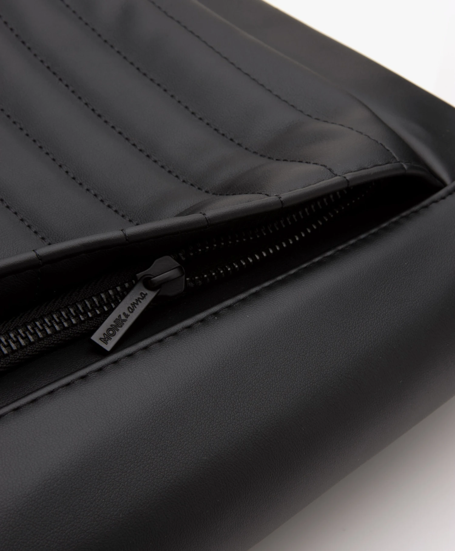 Tas Herb van Monk & Anna is ruim, praktisch en stijlvol. Gemaakt van een hoogwaardige vegan leerkwaliteit en ontworpen om een eigentijdse garderobe te complementeren. De zwarte rugtas heeft slimme rits-en-rolsluiting terwijl de gewatteerde en doorgestikte afwerking van het voorvak een subtiel grafisch element toevoegt. De schouderhengsels zijn uiteraard verstelbaar en gewatteerd voor een hoge mate van comfort.