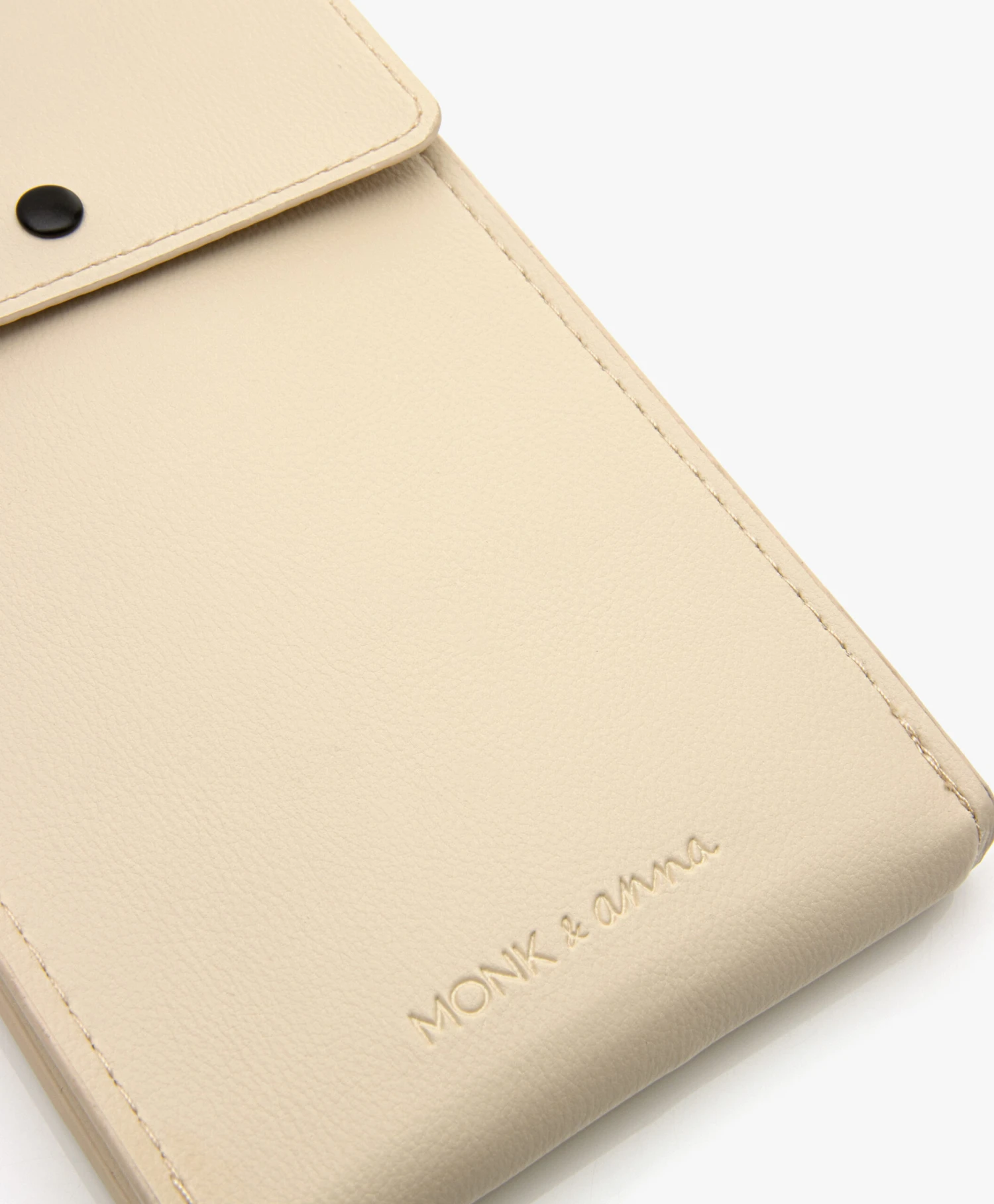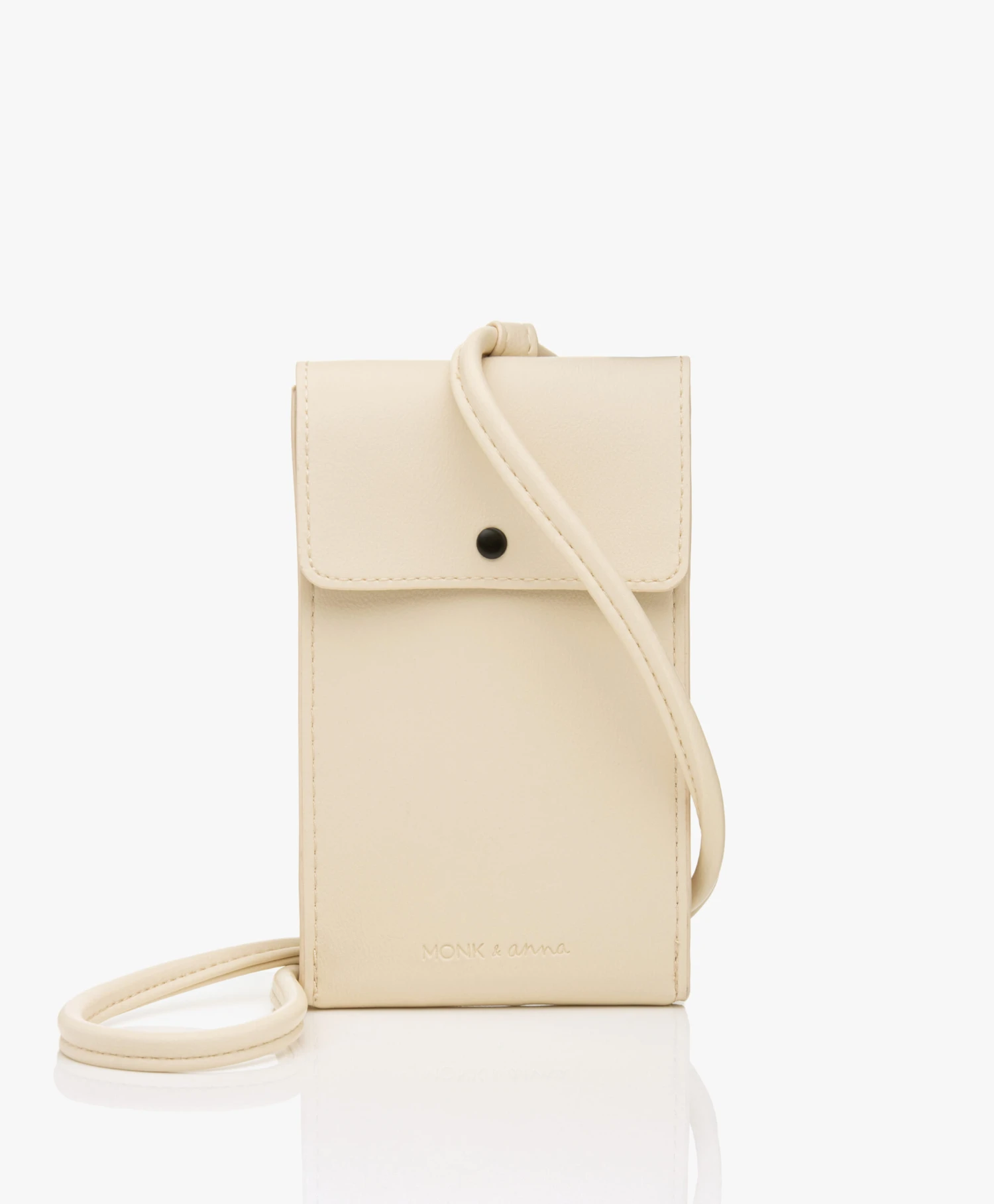 Monk & Anna combineert modern design met eigentijds materiaal door deze ecru Phone Pouch te vervaardigen van hoogwaardig vegan leer met een subtiele, natuurlijke structuur en een luxe uitstraling. Het minimalistische telefoontasje is ook nog eens praktisch, want aan de achterkant bevinden zich steekvakken voor je bankpasjes. Om je outfit compleet te maken en geen onnodige dingen bij je te dragen – let’s go!