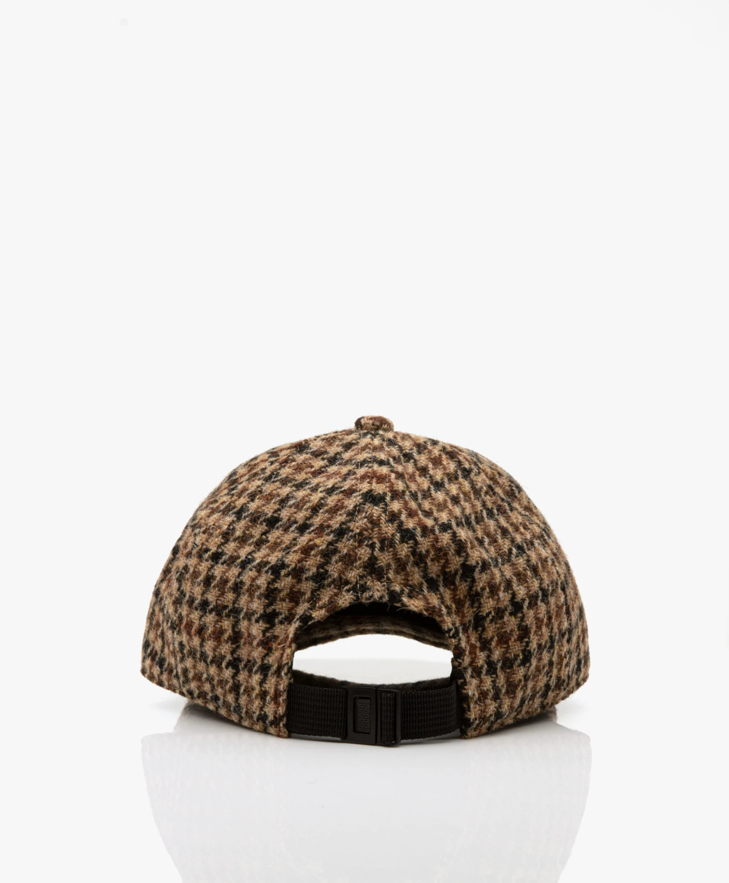 Deze pet is onderdeel van de rag & bone Heritage lijn, en dat zie je terug in zowel de klassieke pied-de-poul ruit als in de stijl van het logo. Twee klassieke aspecten, die lijnrecht tegenover de casual uitstraling van de baseball cap zelf staan. Gemaakt van een puur wollen ‘Harris Tweed’ kwaliteit die grof geweven is in bruine, beige en zwarte garens.