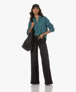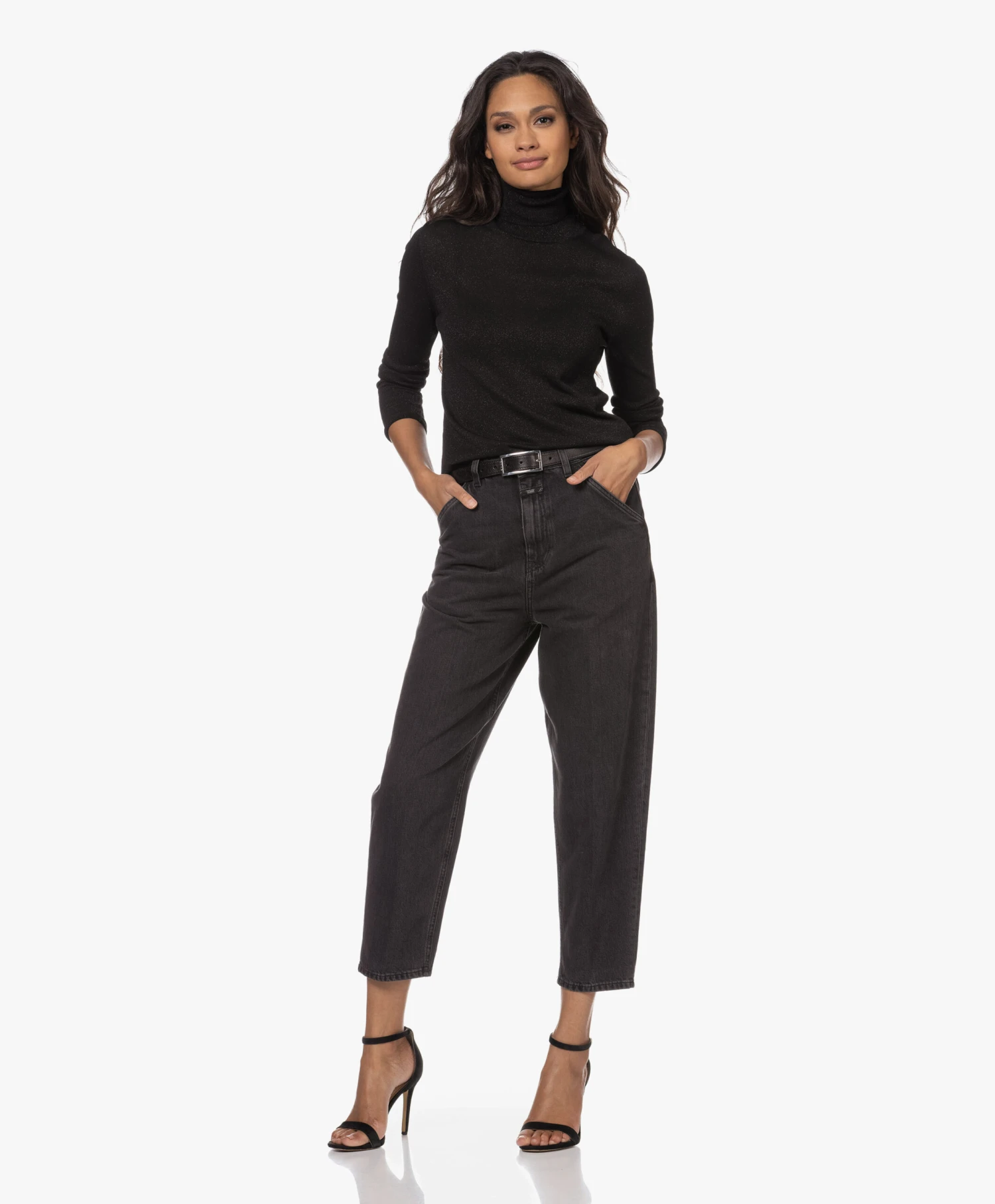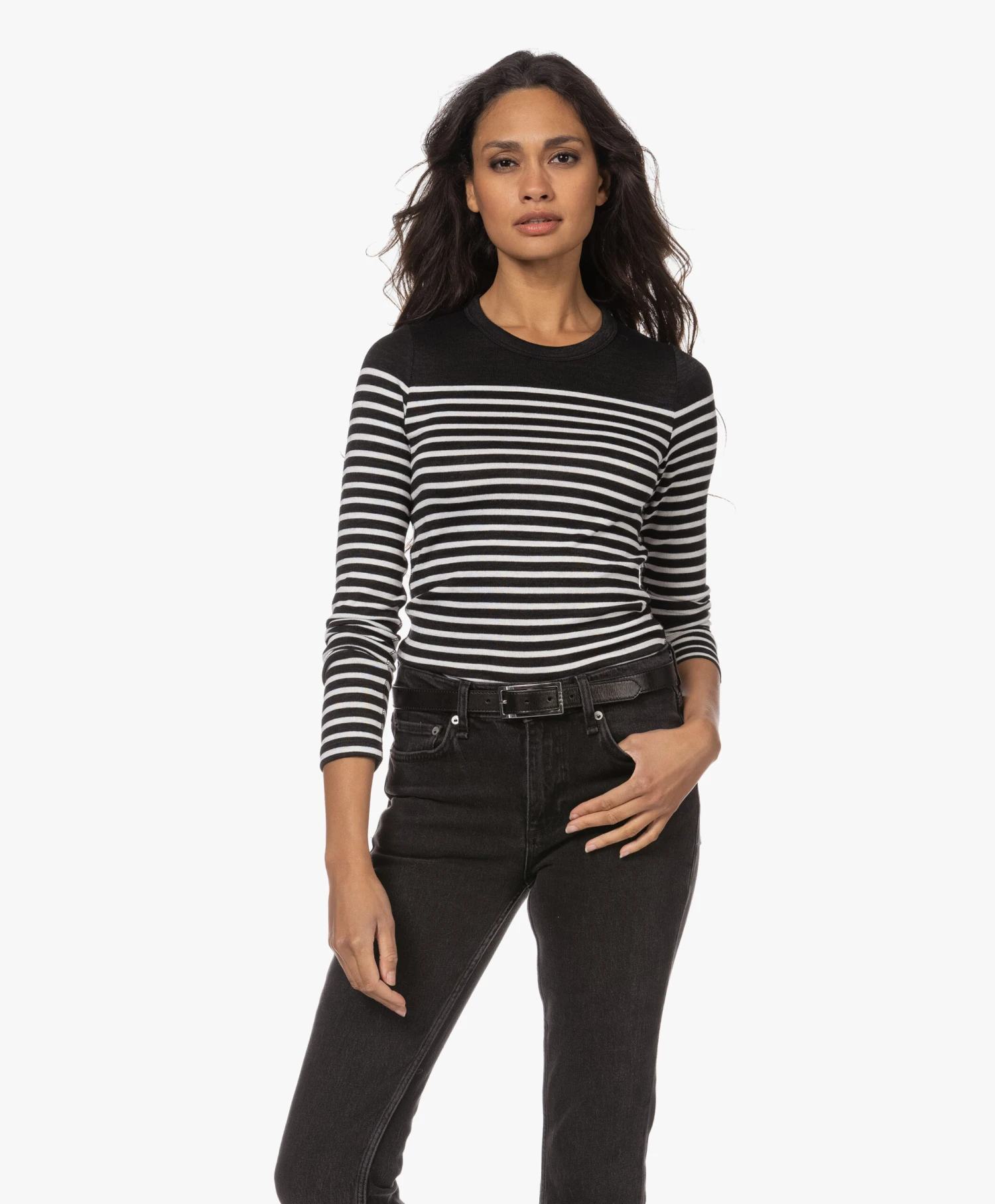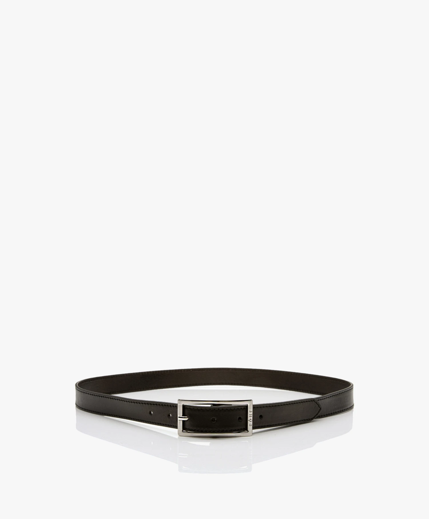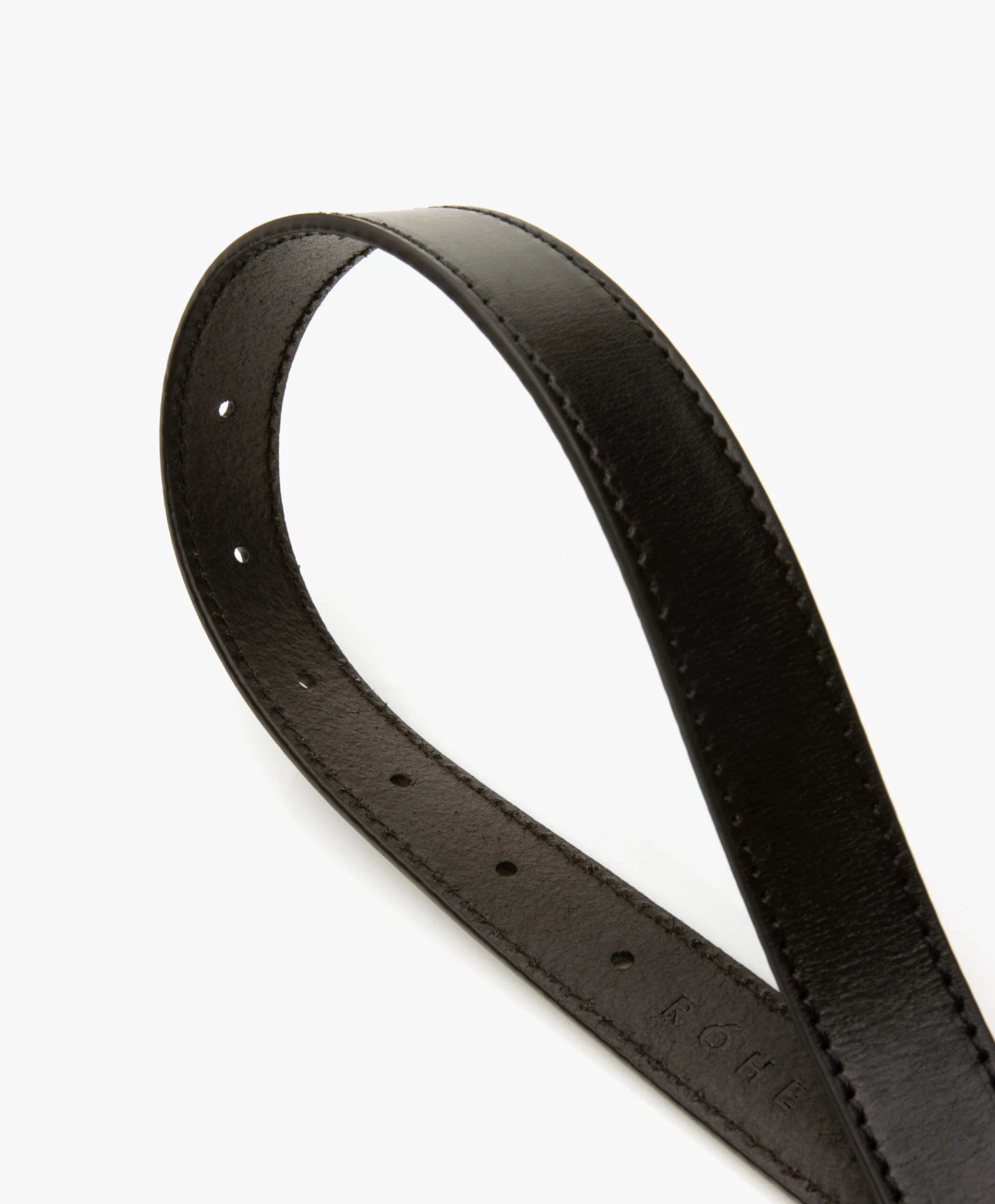 Schoonheid schuilt soms in pure eenvoud, en dat gaat zeker op voor Róhe’s zwarte Ara ceintuur. Gemaakt van glad leer met subtiele structuur, voorzien van een glanzende rechthoekige gesp van zilverkleurig metaal met ingestansde merknaam.