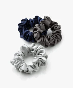 Tijd om je collectie haarelastieken een upgrade te geven. Dit 3 pack van slip™ bevat een combinatie van een grote donkerblauwe, donkergrijze en lichtgrijze scrunchie die niet alleen stijlvol zijn, maar ook dienen als beschermend haaraccessoire dankzij de hoogste kwaliteit Mulbery zijde. De puur zijden kwaliteit heeft de perfecte glans, dikte en zachtheid waardoor haaruitval en beschadiging wordt voorkomen – met name tijdens het slapen.
