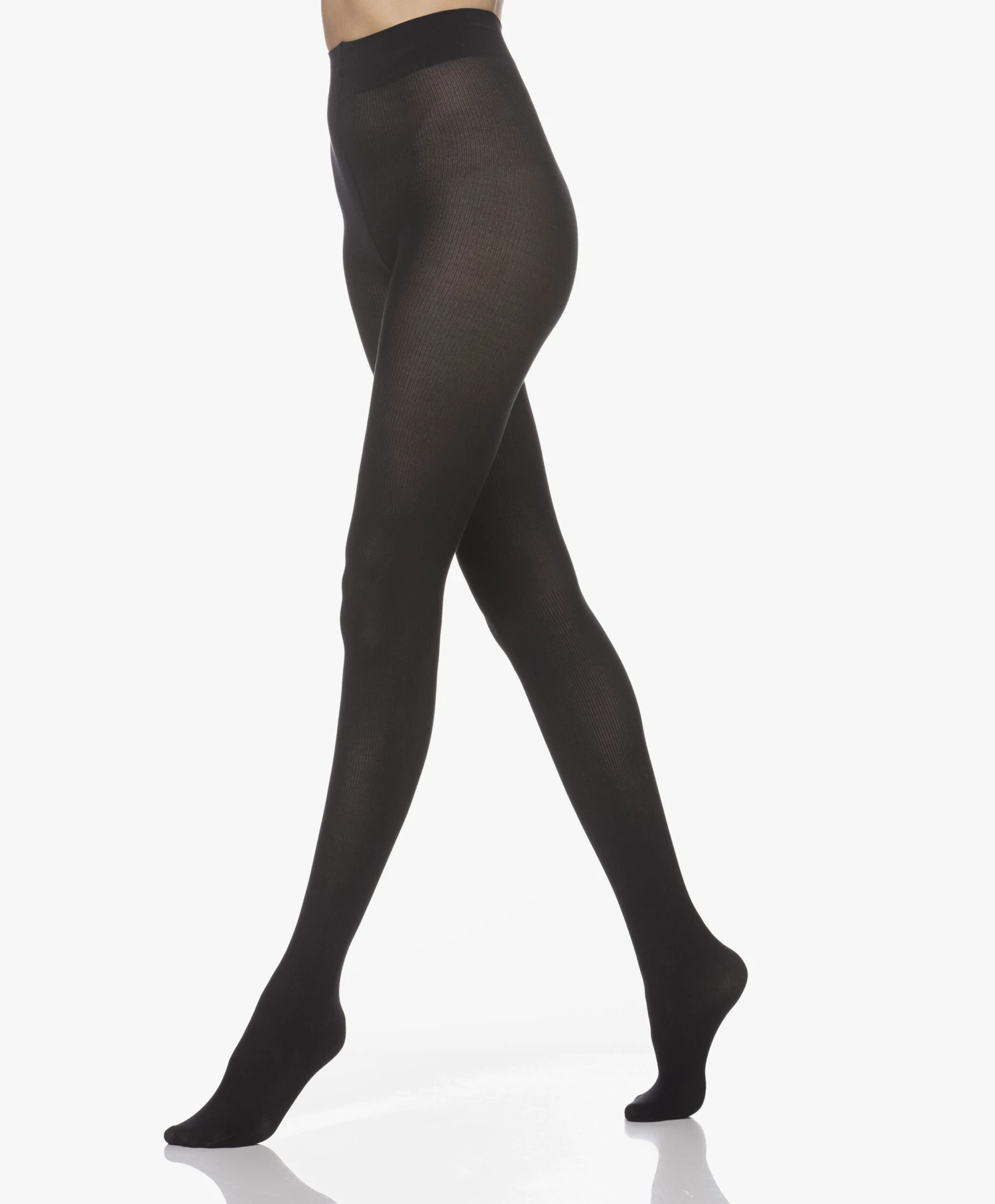 Op zoek naar een panty die net niet gewoontjes is? Dan biedt deze zwarte Mary panty van Wolford uitkomst. De 70 denier panty heeft een matte look en is ontworpen met een ultra-verfijnde ribstructuur die een subtiele textuur toevoegt aan elke look. De zachte tailleband is extra breed gebreid voor een hoge mate van comfort de hele dag door.