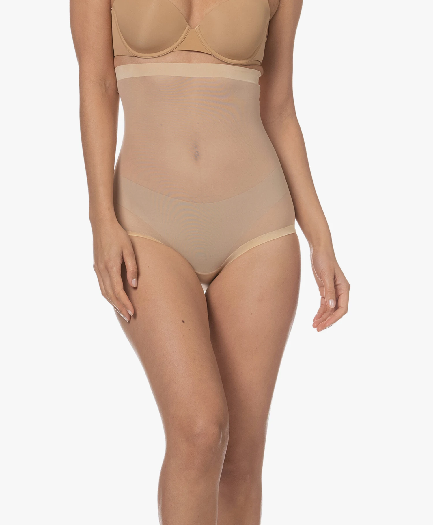 Deze nude-kleurige Tulle Control Panty High Waist van Wolford heeft een shapend effect bij de taille en buik. Gemaakt van de fijnste, iets transparante en comfortabele tule stof. Ontworpen met een extra hoge tailleband die effectief gladmaakt – afgewerkt met een siliconen rand aan de binnenkant van de tailleband voor optimaal comfort en een perfecte pasvorm. Â